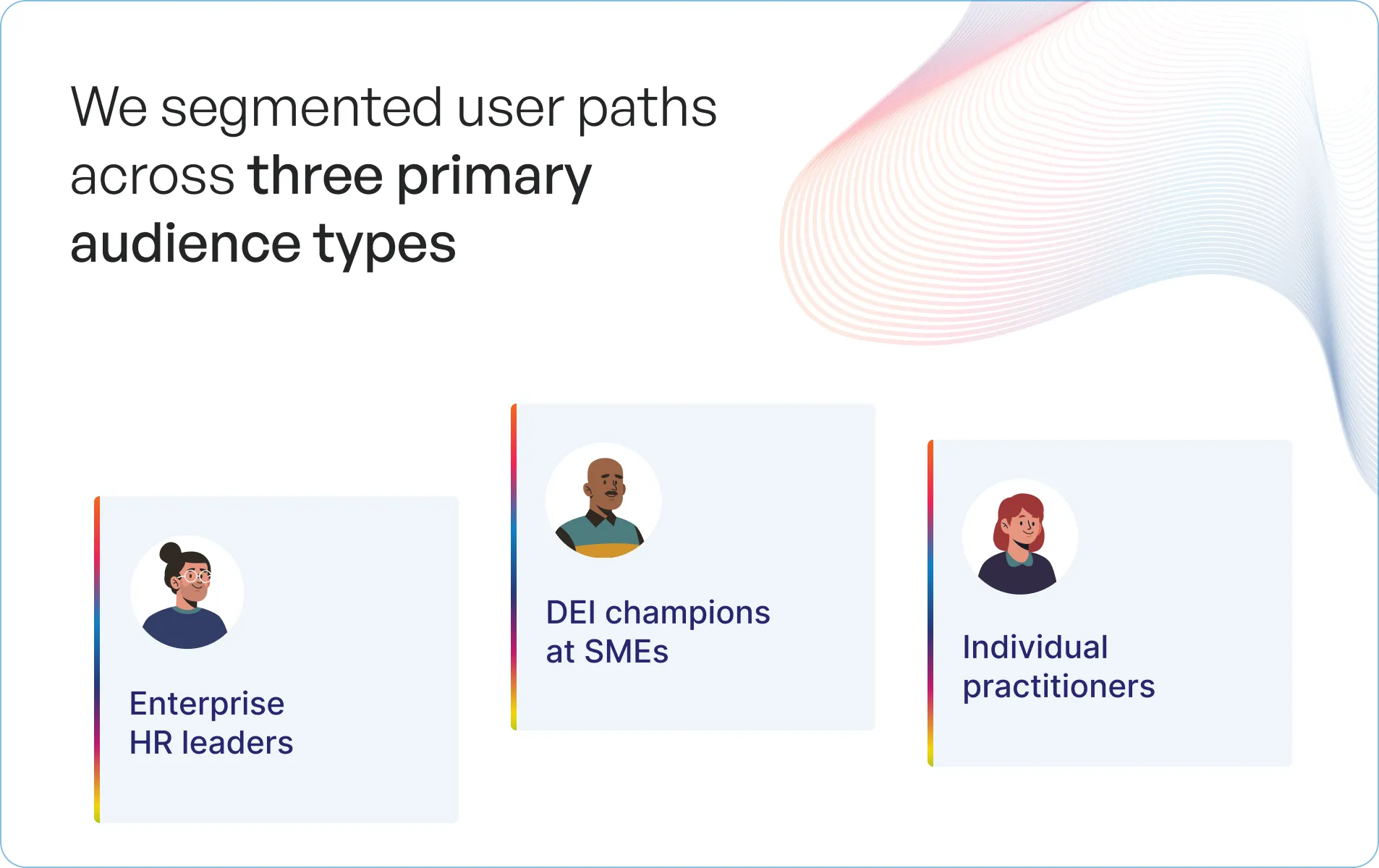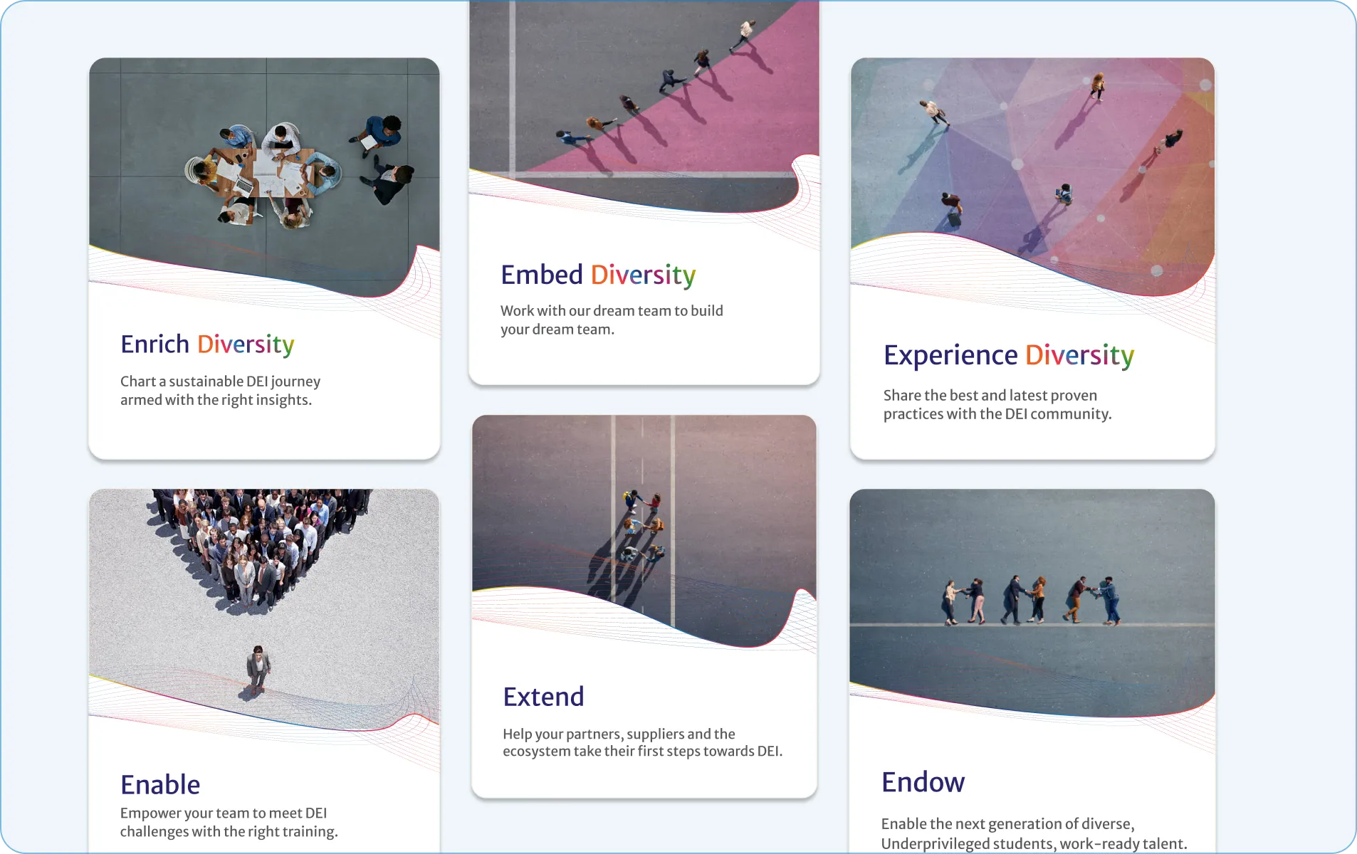 Developed a new digital design language centered on a flowing strands motif visually representing the interconnected, evolving nature of inclusion.