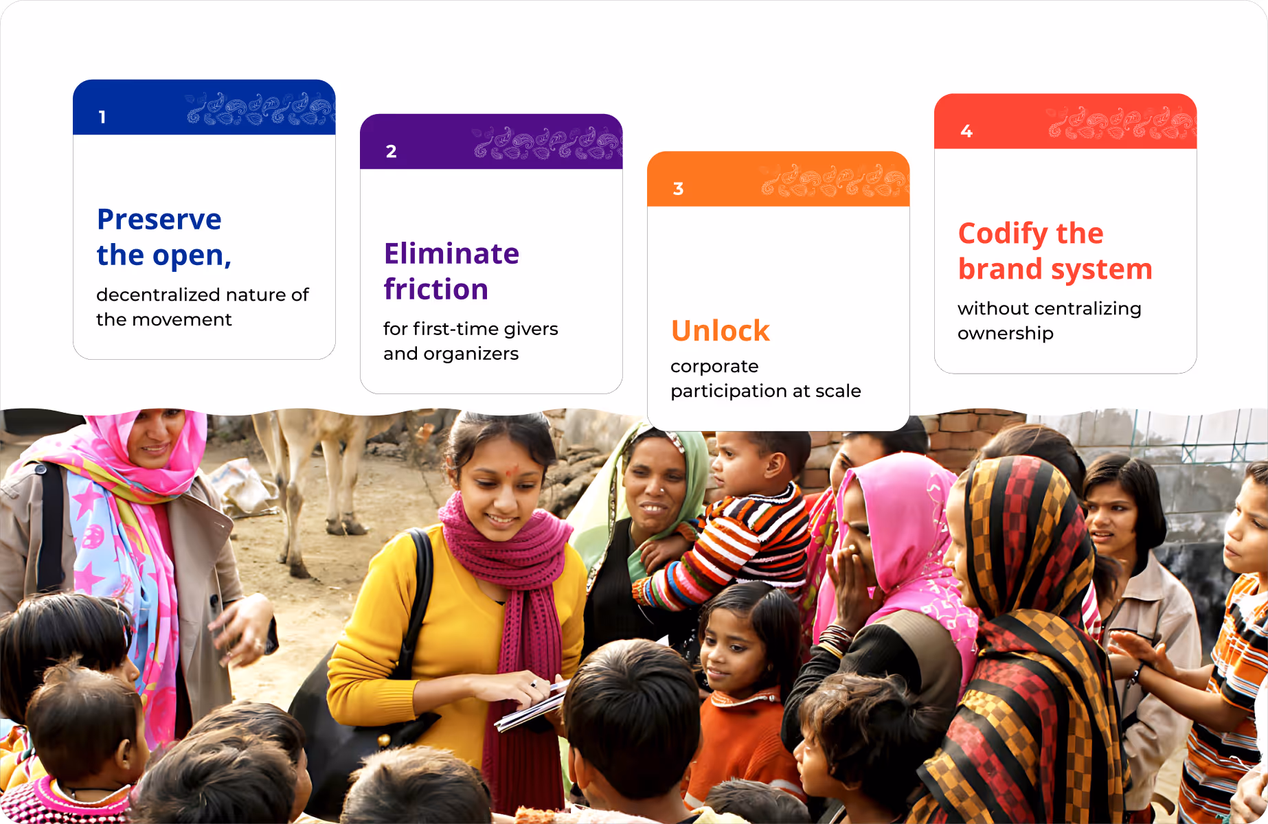 Daan Utsav started a movement with their “Festival of Giving” and built significant top-of-funnel awareness but they were facing a scalability and consistency plateau. The initiative had grown through a decentralized, volunteer-led model, but the absence of cohesive messaging, identity systems, and participation infrastructure limited its ability to grow in a structured, replicable way.