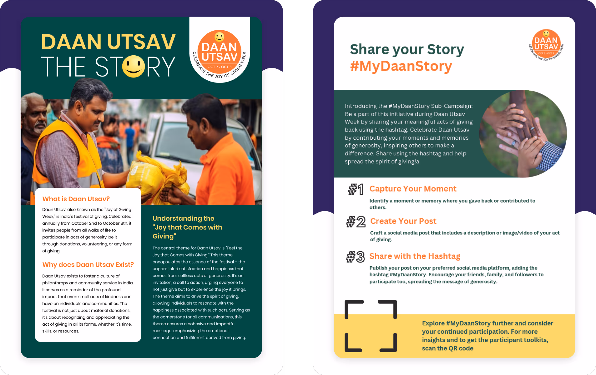 We built a modular asset ecosystem that enabled any corporate, volunteer group, or institution to activate Daan Utsav with minimal friction.