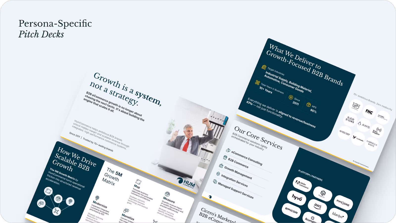 Humcommerce, a Magento-specialist agency, faced the classic problem of expertise trapped in a sea of sameness. Despite their strong delivery track record, their brand struggled to break through the clutter of lookalike offshore development shops.