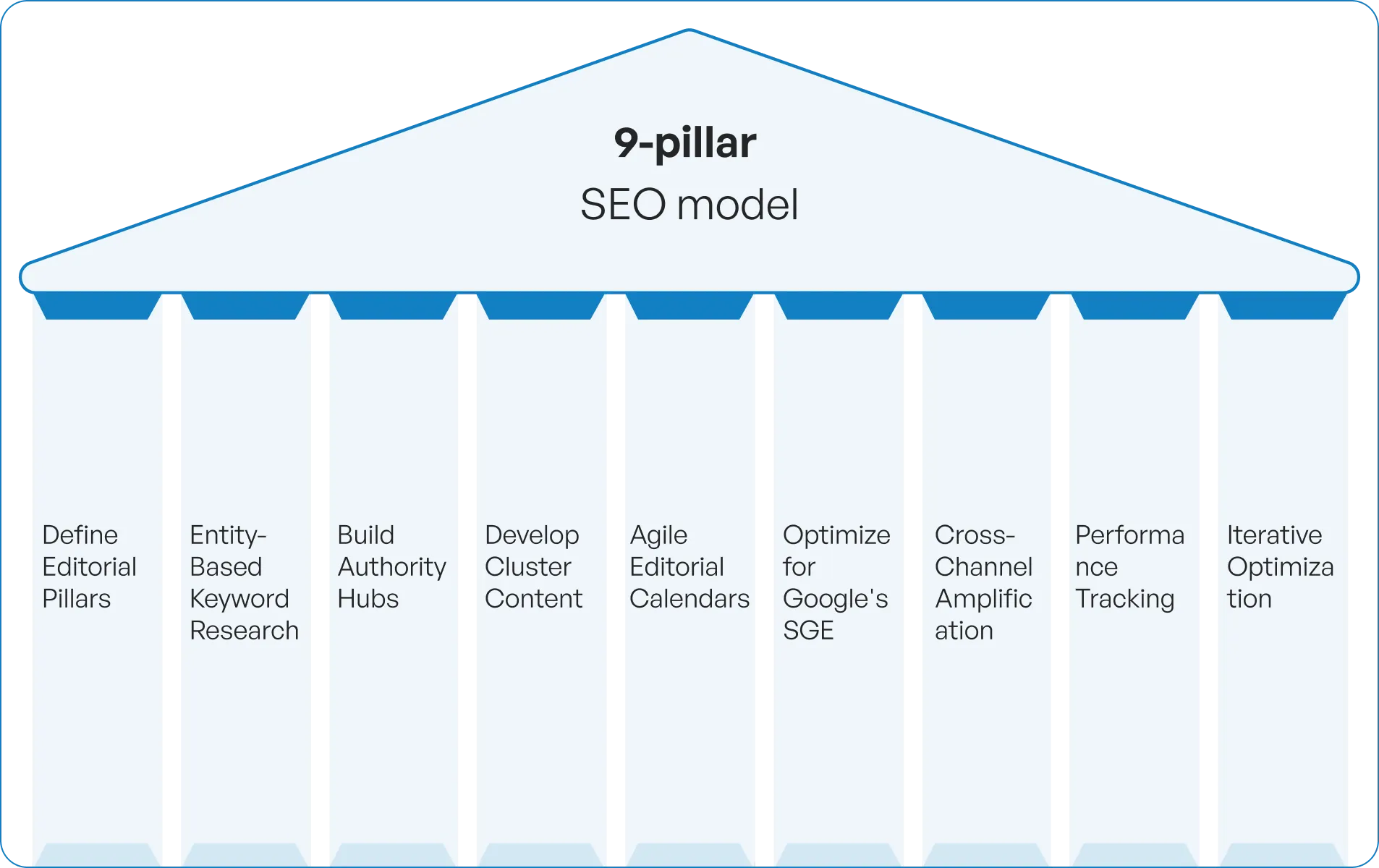 9-pillar SEO framework positioning IDR for next-generation search visibility with entity-based optimization and editorial integration