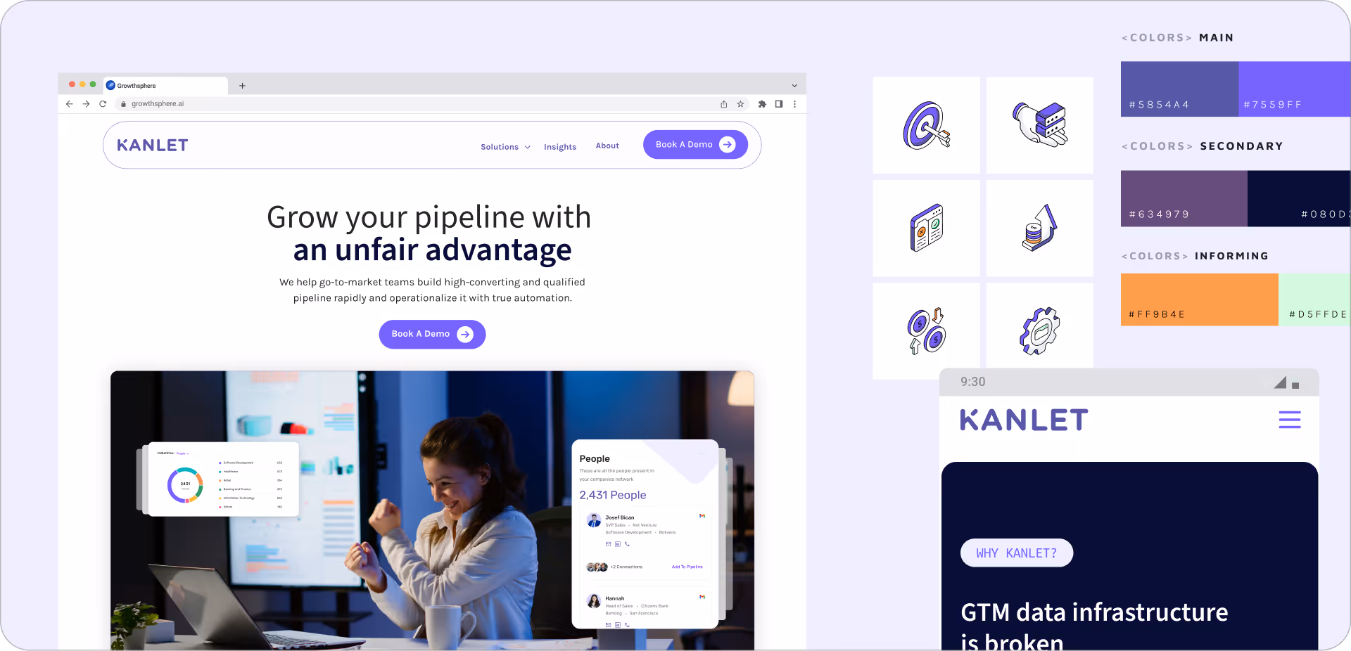 Signal-based selling was a blind spot in most sales teams’ playbooks and in their vocabularies. We positioned Kanlet to fill that gap by translating abstract modules into execution-led value props. “Track” became champion tracking. “Signal” became intent monitoring.