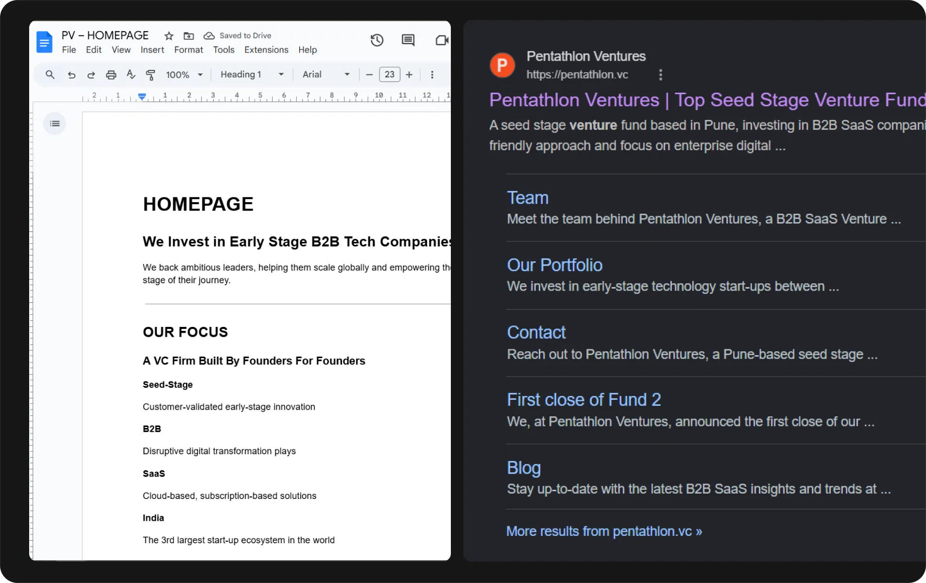 In a market flooded with faceless, logo-driven VC sites and generic “we invest in people” messaging, Pentathlon needed to: