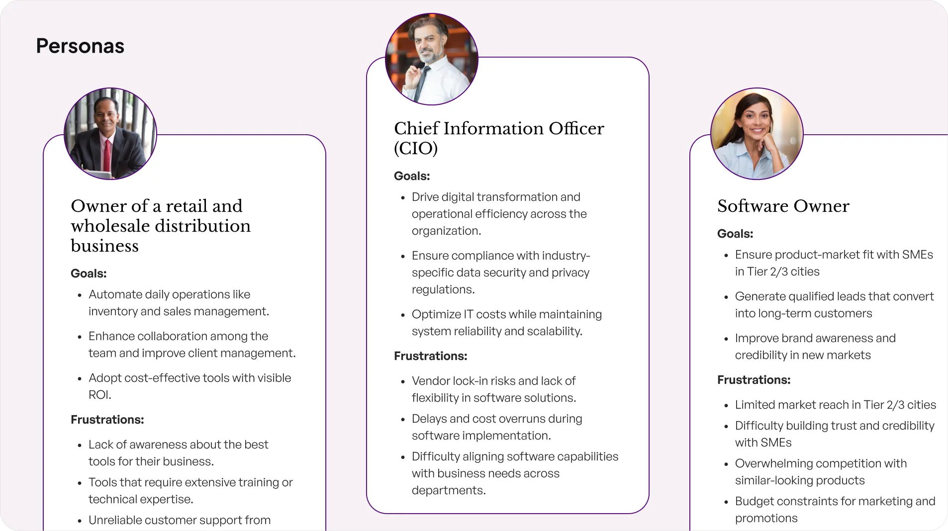 Each persona informed tone, interface design, and copy strategy.