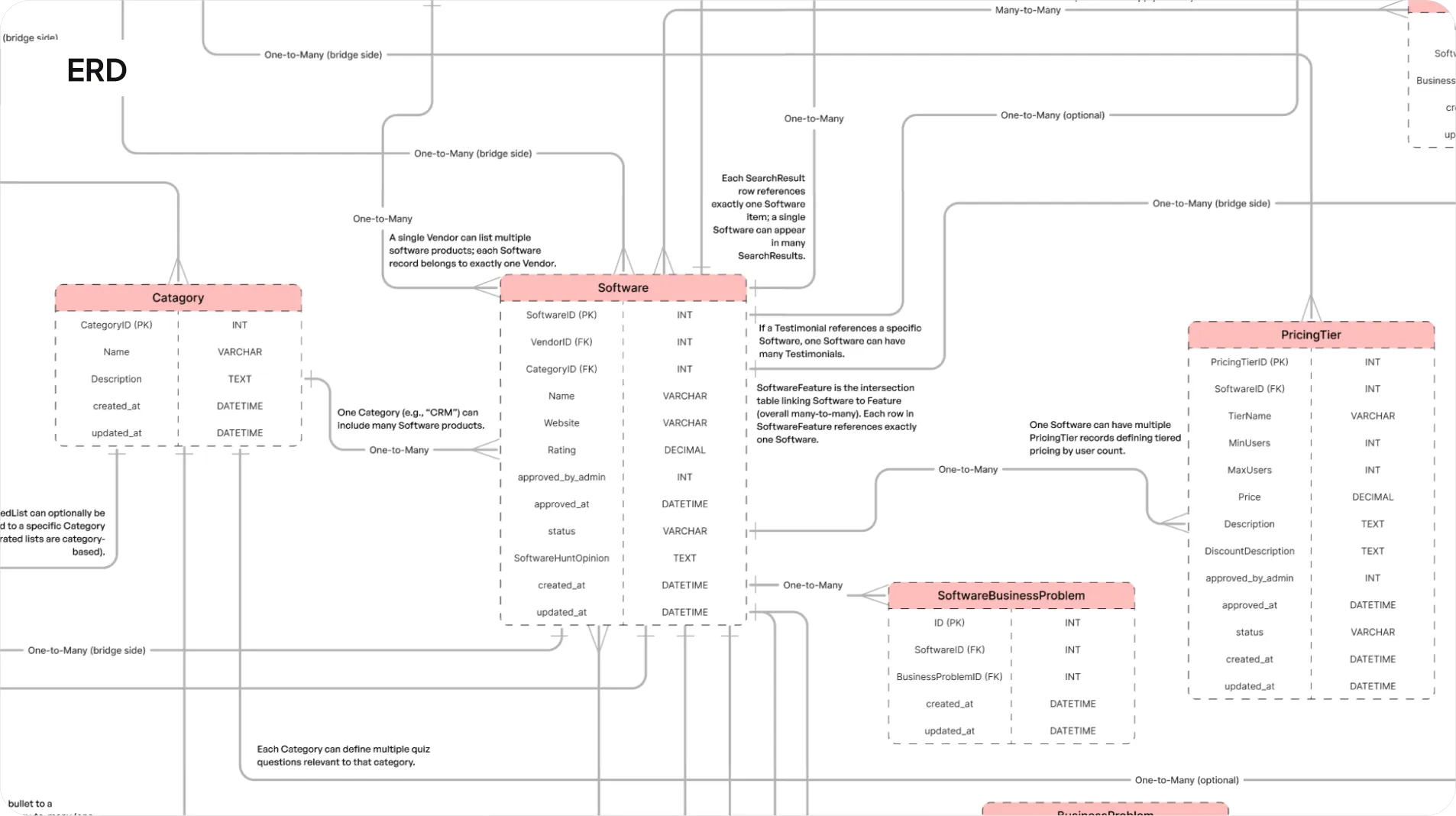 Data Architecture: We developed a flexible entity-relationship model to support evolving buyer inputs and scalable recommendation logic. Four key entities formed the foundation: