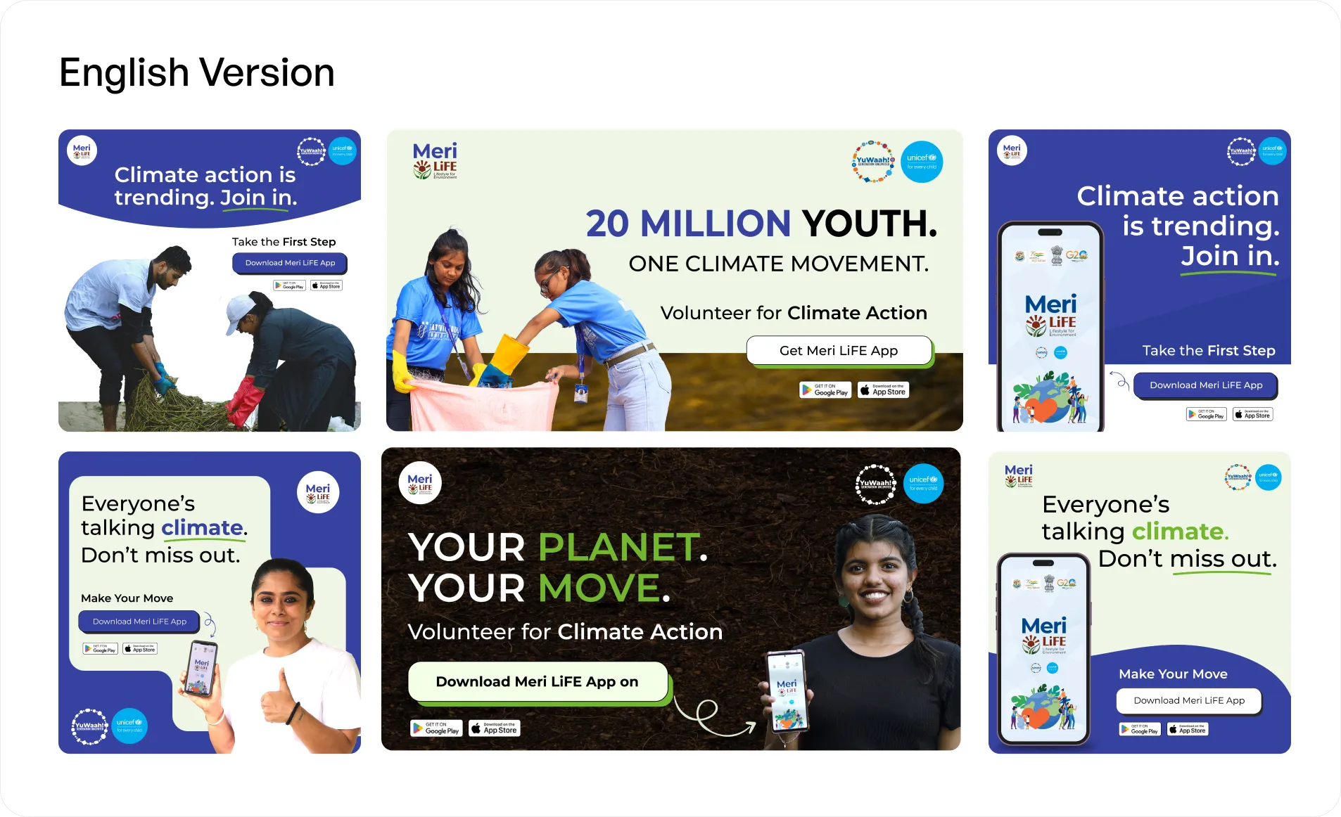 UNICEF, in partnership with YuWaah and the Government of India, launched the Meri LiFE app to mobilize youth for climate volunteering. The goal was to achieve over 55,000 intent-rich downloads in under a month. They needed it from young people motivated to take meaningful action.