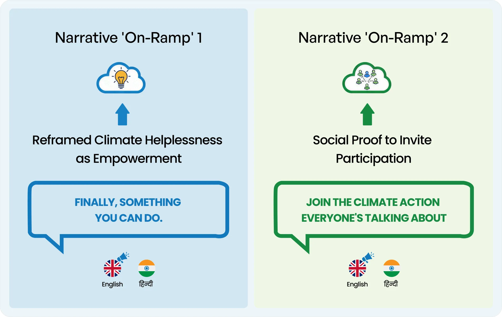 Messaging Sprints: We developed and tested two narrative “on-ramps” that both laddered up to our unifying insight: