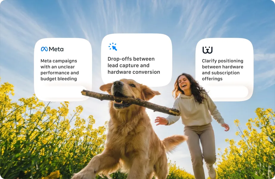 Waggle, a pet tech company with 10,000+ customers and a product line spanning Pet Monitors, Smart Feeders, and WaggleCam, was bleeding budget and losing leads. For a brand with 10M+ social followers and proven product-market fit, the numbers weren't adding up.